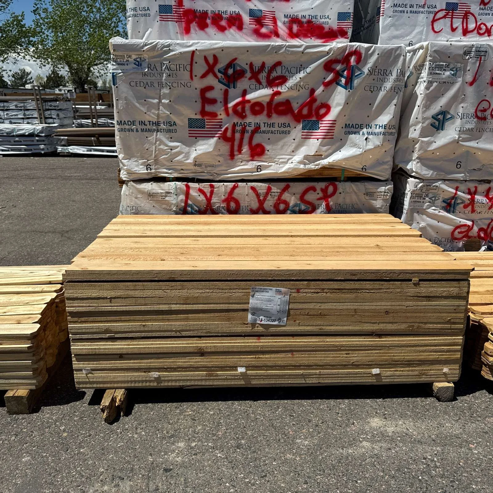 - Cada piquete mide 1 X 6 (5/8" de grosor) y 6 pies de altura.